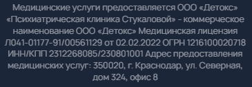 Круглосуточную помощь в Центре доктора Екатерины Стукаловой предоставляют опытные врачи-наркологи, психиатры. Они выезжают на вызов вместе с младшим медицинским персоналом. Наши сотрудники знают, как действовать при агрессии или спутанности сознания. Они успокоят пациента, устранят угрозу для жизни и здоровья окружающих и самого пациента.